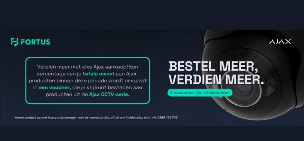 • Tijdens de actieperiode verdien je jouw Fortus-Ajax voucher op basis van jouw omzet gedurende deze periode op producten uit het Ajax Systems-assortiment