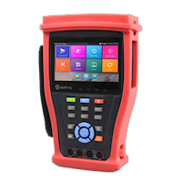 De Gold Label CCTV tester is een professionele, universele camera tester voor IP, HDTVI, HDCVI, AHD en CVBS analoge camera's Dit model, met Android besturingssysteem, beschikt over onder meer een digitale multimeter, een PoE uitgang, WiFi, een touchscreen scherm, een HDMI ingang, audio tester en nog veel meer De beeldresolutie is geschikt voor IP camera's met H.265 en H.264 decoding tot 4K Ultra-HD, Turbo camera's tot 5MP en HDCVI en AHD camera's tot 4MP. De lithium batterij (7.4V 5000mAh) heeft een operationele tijd van ongeveer 10 uur